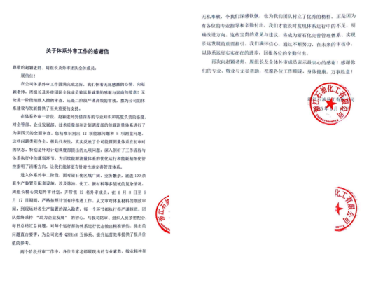 值得一提的是,三星九千審核團(tuán)隊的專業(yè)素養(yǎng)和出色表現(xiàn)獲得了客戶的高度認(rèn)可,為此,浙江石化特別發(fā)來表揚信,對審核團(tuán)隊的專業(yè)能力和敬業(yè)精神表示誠摯感謝。