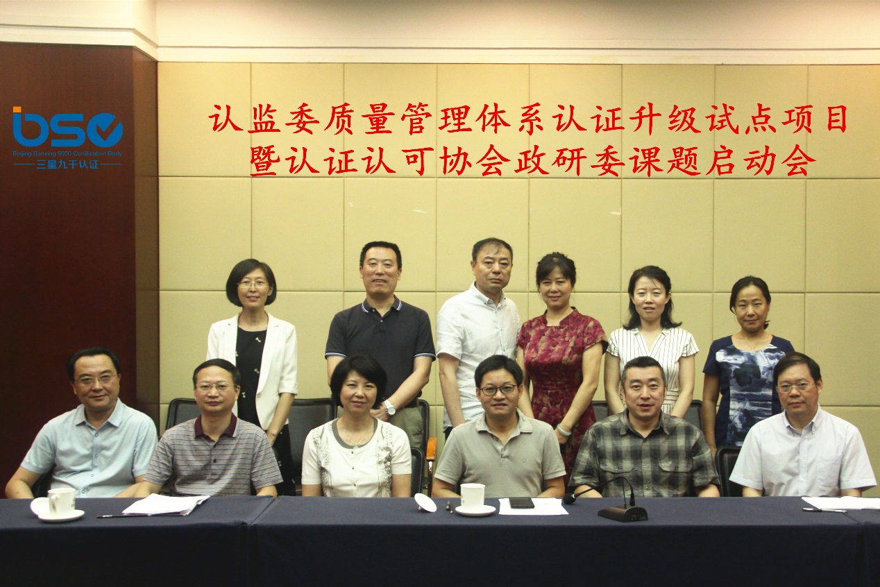 北京三星九千認證中心于2017年6月16日在北京西藏大廈召開了認監(jiān)委質(zhì)量管理體系認證升級試點項目暨認證認可協(xié)會政研委課題啟動會。國家認監(jiān)委法律部王學(xué)勝副主任、認可監(jiān)管部付強處長和認證認可協(xié)會會員部傅瑞云主任蒞臨會議,中國石油和化學(xué)工業(yè)聯(lián)合會及中石油東北化工銷售分公司、北京中化聯(lián)合認證有限公司委派代表共同參會。