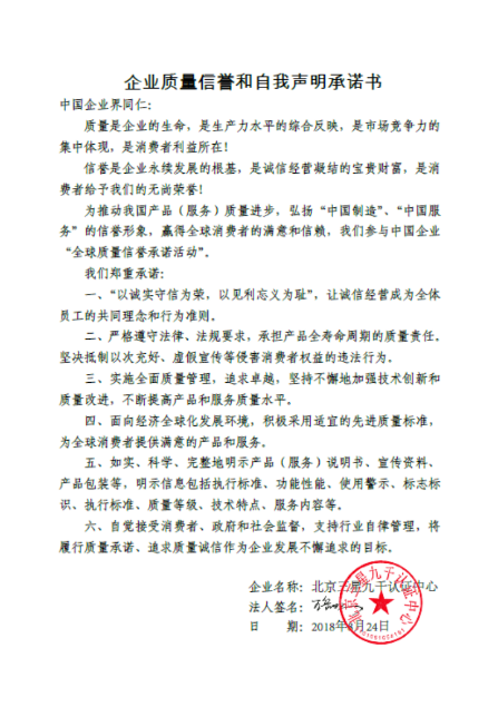 北京三星九千認(rèn)證中心積極參加“企業(yè)質(zhì)量信譽(yù)和自我聲明承諾” 活動(dòng)